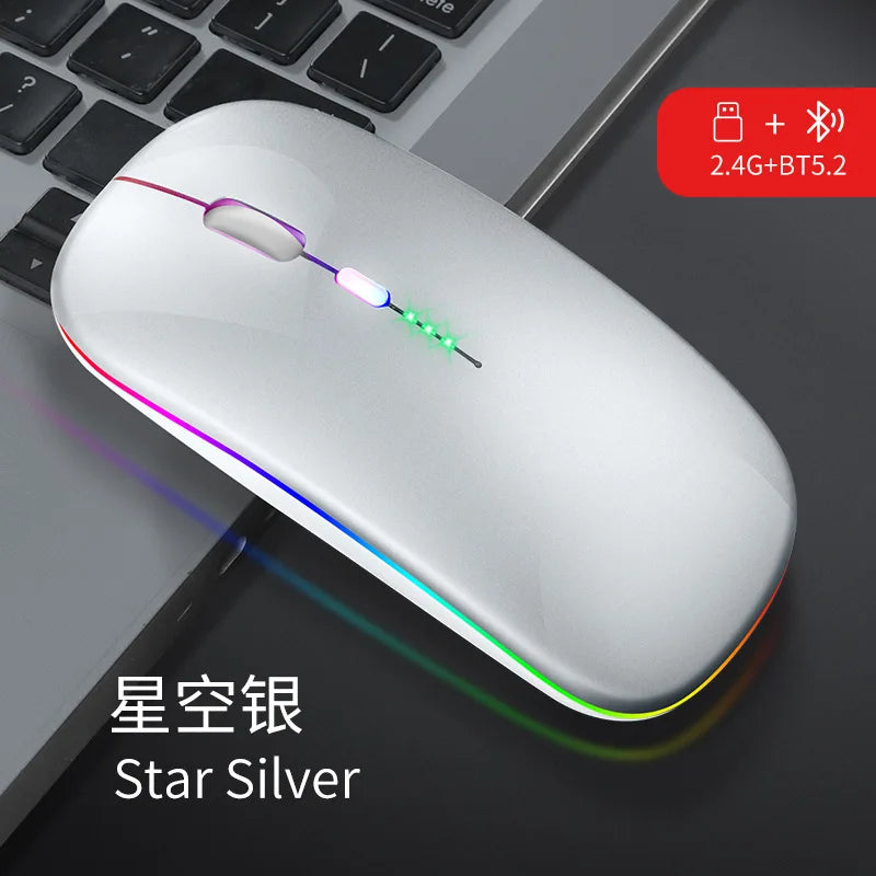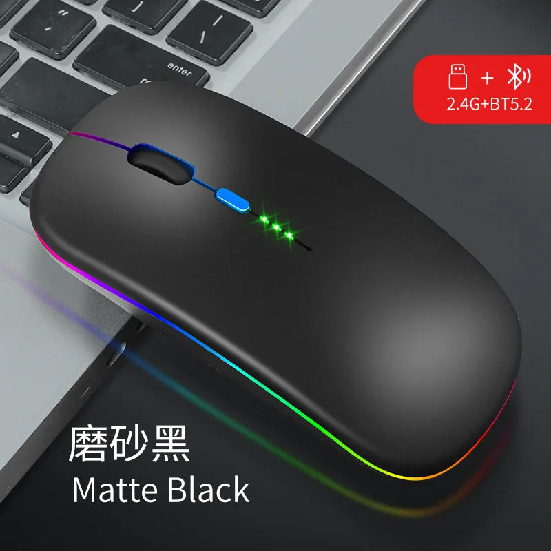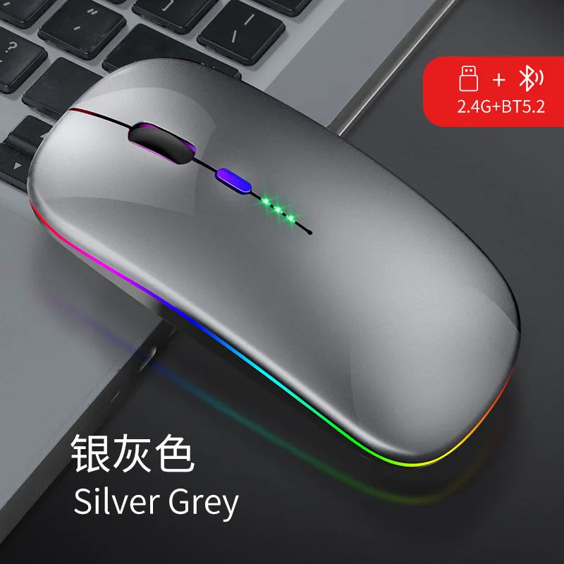 - 1 Mouse sem fio recarregável wireless e bluetooth silencioso com LED RGB ou sem RGB ( depende do modelo que você escolher ).